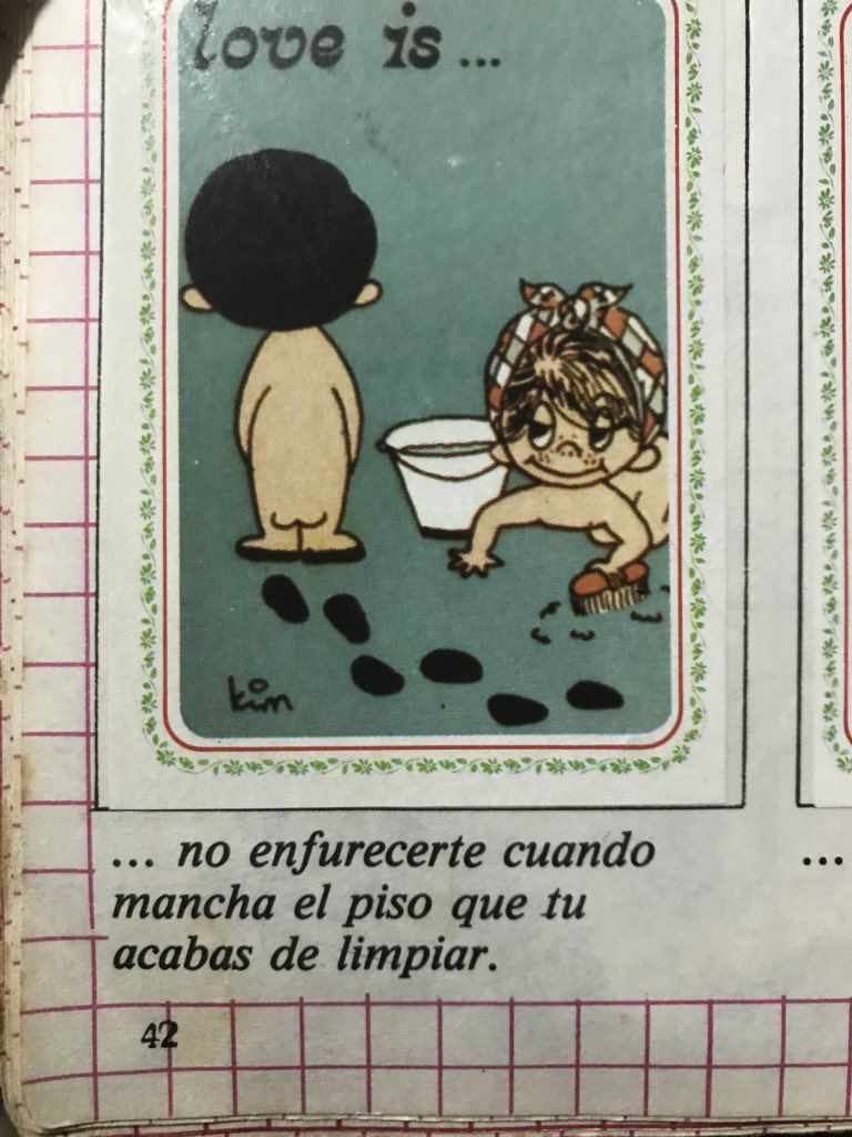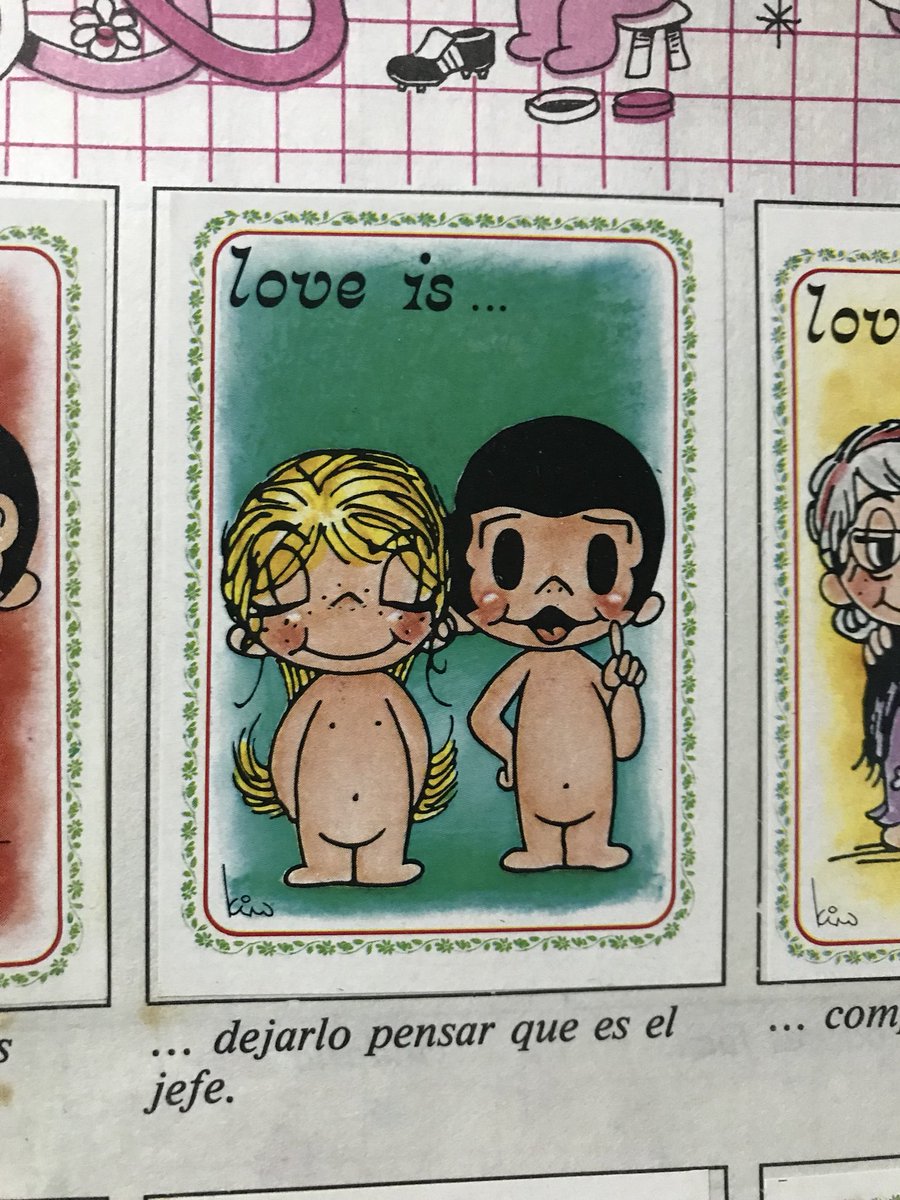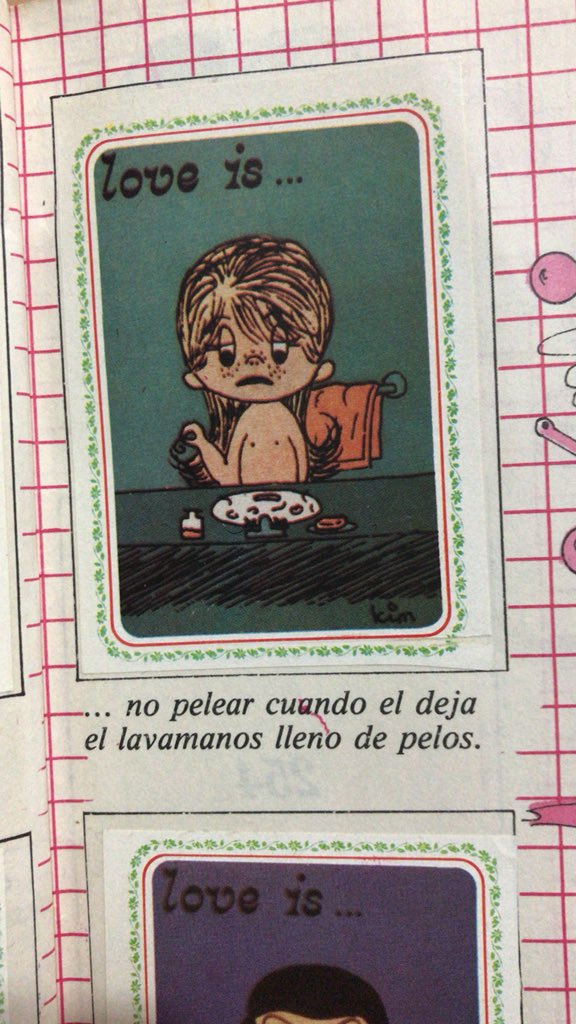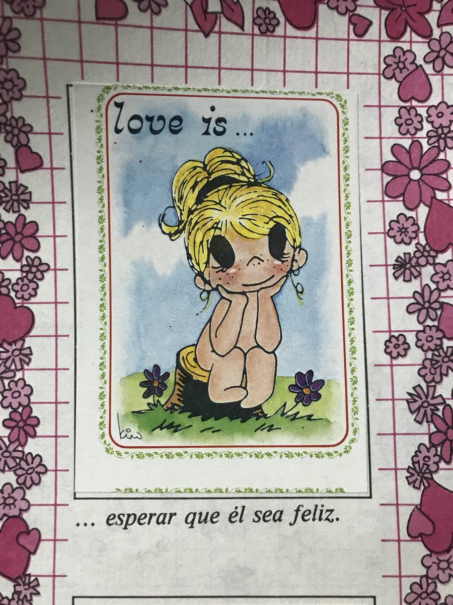 Hemos encontrado un hilo muy interesante en Twitter, en el que la usuaria Maya (@AleMayamaya) nos enseña un álbum de cromos de panini perteneciente a su madre, un álbum de 1970. Los cromos, con la introducción «Love is…» (El amor es…) hablan de como deberían ser las relaciones entre mujeres y hombres.
