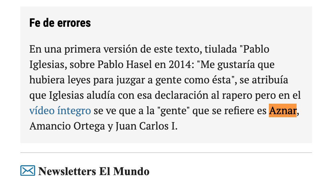 Varias televisiones se han hecho eco de una falsedad de El Mundo publicada ayer. Hoy El Mundo reconoce que mintieron en una “Fe de errores” 👇🏻¿Alguien piensa que esta nota compensa la difusión masiva de la mentira? ¿Rectificarán los telediarios? pic.twitter.com/PUBgLnNvxY