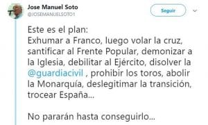 • Noticia anterior El plan de Sánchez según José Manuel Soto: Demoler el valle, disolver la guardia civil, prohibir los toros…