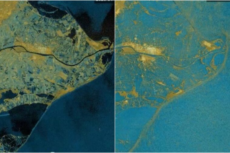 El satélite Sentinel1 de Copernicus ha permitido comprobar con exactitud los estragos. En poco más de una semana, el delta ha sido engullido casi completamente por el agua.