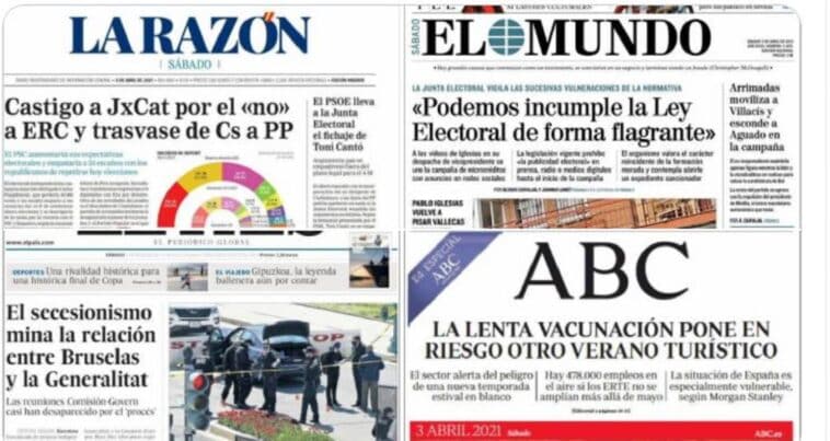 El periódico de la derecha, que mintió sobre los atentados del 11M, oculta en su portada el atentado ultra contra nuestra sede y prepara el terreno para hablar de “fraude electoral” cuando la izquierda gane el 4 de Mayo. Estilo Trump. Se les ve preocupados 😊 pic.twitter.com/HFT5W1kbPn