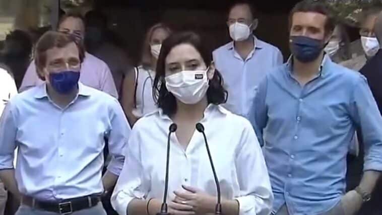 Ayuso ha pronunciado estas palabras en declaraciones a los medios de comunicación frente a la sede del PP en Génova, acompañada por el líder del partido, Pablo Casado, el secretario general del PP, Teodoro García Egea, y el alcalde madrileño, José Luis Martínez-Almeida, entre otros. Después, han acudido a la concentración de la Plaza de Colón contra los indultos.
