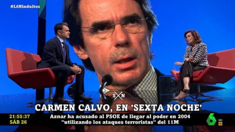 La vicepresidenta primera del Gobierno, Carmen Calvo, no ha tenido piedad con el expresidente del Gobierno José María Aznar, después de que este acusara al PSOE de llegar al poder en 2004 “utilizando los ataques terroristas” del 11-M y luego gracias a una moción de censura “apoyada por separatistas y exterroristas”.