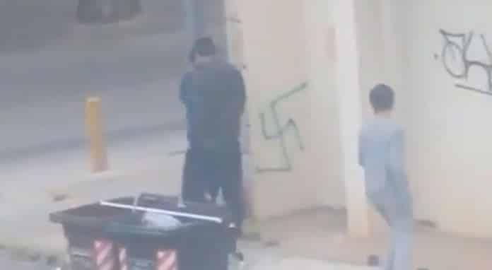 Los hechos tuvieron lugar el viernes, cuando el sujeto, junto a otros dos jóvenes, garabateó el símbolo nazi en la pared de una vieja industria de la zona, a pocos metros del cuartel de la Guardia Civil, para luego marcharse del lugar.