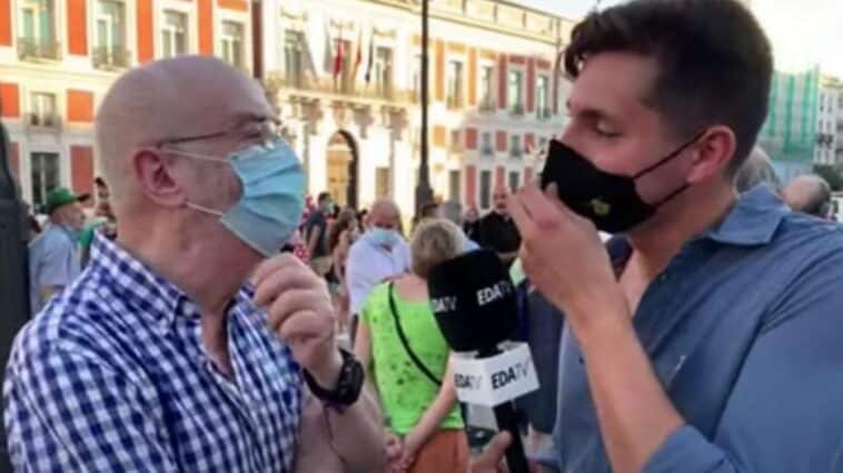 En la protesta había opositores al régimen cubano, pero también varios defensores, uno de los cuales fue entrevistado por el reportero de ultraderecha. Uno de los temas que trataron fue la crisis de las residencias de ancianos durante la pandemia y el culpable de la tragedia: «En una rueda de prensa en Moncloa, Pablo Iglesias asumió la responsabilidad de las residencias y la gestión del Covid», dijo el reportero.