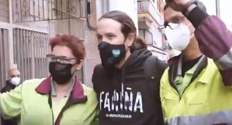 La visita de Iglesias, que ha acudido a varios bancos de alimentos, ha hecho que numerosos vallecanos salgan a su paso con aplausos y gritos de ‘Sí se puede’.