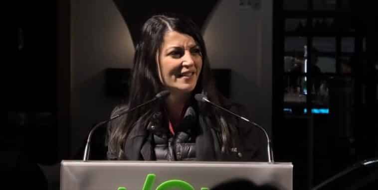 Macarena Olona, portavoz y secretaria general de VOX en el Congreso, viajó ayer hasta Lepe, Huelva, para ganarse la confianza de la clase obrera andaluza a base de mentiras.