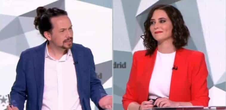 Pablo Iglesias, candidato de Unidas Podemos, e Isabel Díaz Ayuso, presidenta y candidata del PP en Madrid, han protagonizado uno de los encontronazos más comentados del debate electoral en Telemadrid.