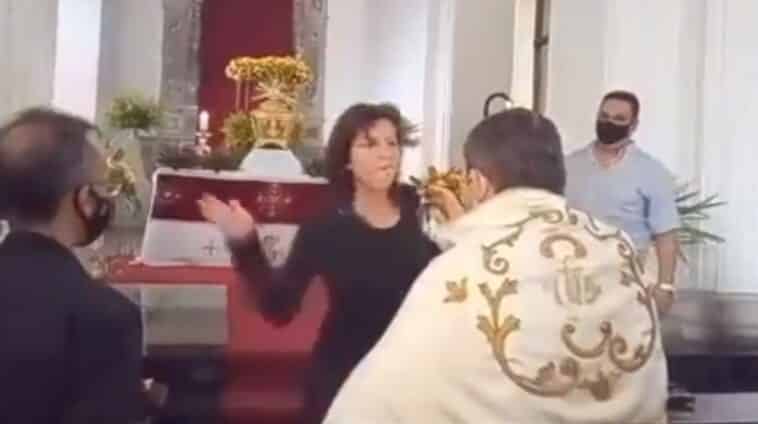 Un teléfono móvil ha captado las sorprendentes imágenes de cómo una mujer abofetea al sacerdote José Lucio León en mitad de una misa vespertina este Jueves Santo en la Catedral de San Cristóbal, Táchira, Venezuela.